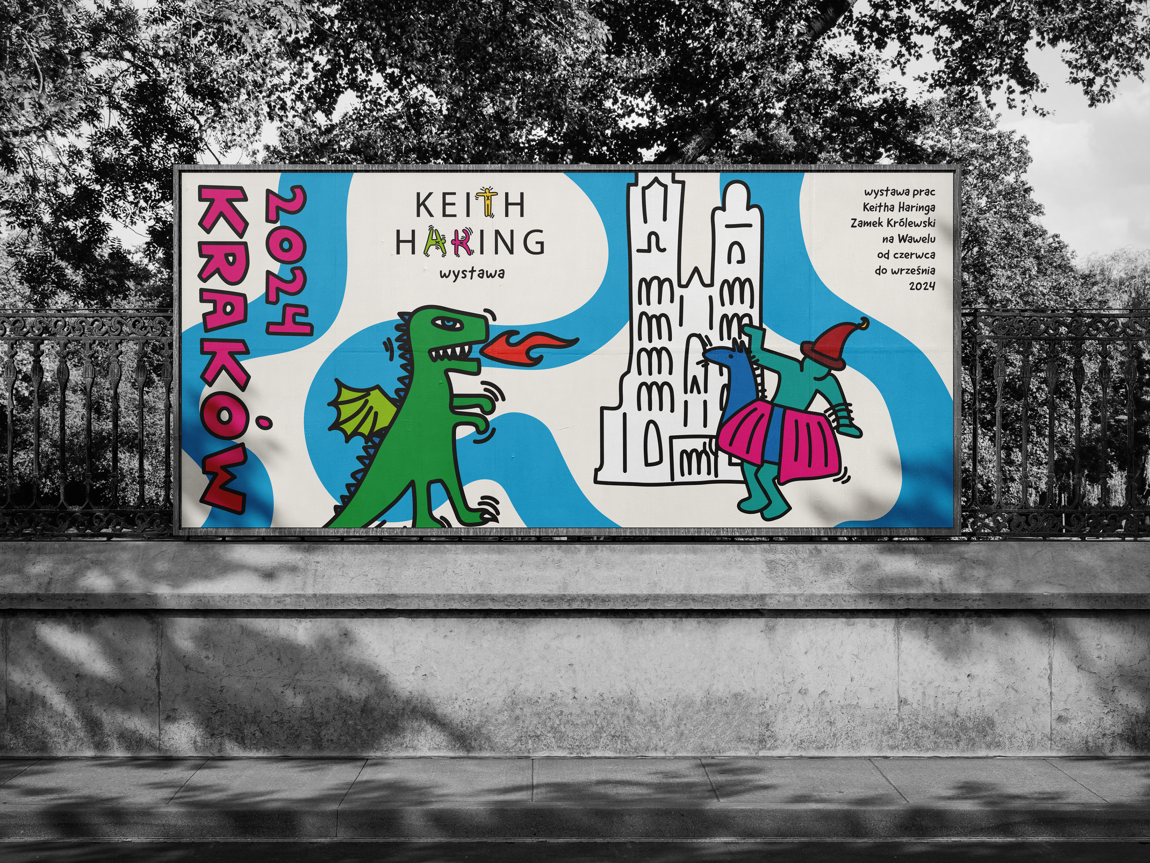 Projekt identyfikacji wizualnej wydarzenia medialnego. Jest nim wystawa prac artysty Keitha Haringa.
